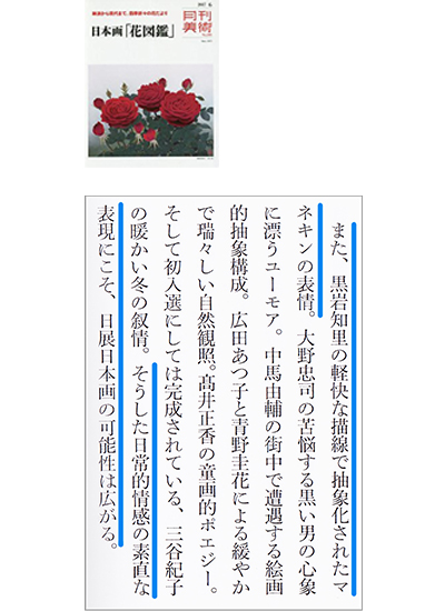 The work that selected for The 1st new Nissyun Exhibition was apperaed in the monthly Magazine 'Bijutsu'.